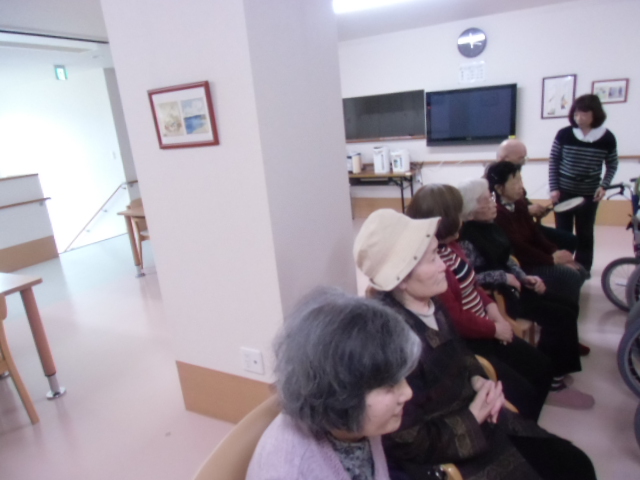 今日は、1号館の音楽療法の日です。 暖かくなってきたので、心も体も弾む感じで、入居者様の声も良く出ていました。 手をつないだり、太鼓を叩いたりと、楽しんでらっしゃいました。 中川先生、来週もよろしくお願いいたします。