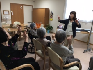 今日は3号館での音楽療法の日です。 今日も心待ちにしていた入居者様達が リズムをとりながら指を動かしたり、鳴子を使ったりして 楽しまれていました。 中川先生、来週もよろしくお願いいたします。