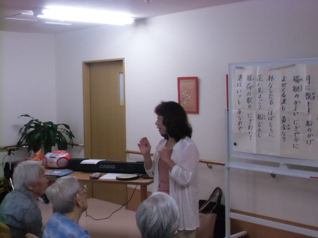 今日は1号館の音楽療法の日です。 今日は、「港」などの歌を、入居者様達も懐かしそうに当時を思い出しながら歌われていました。 中川先生いつも色んな歌をありがとうございます。 来週もよろしくお願いいたします。
