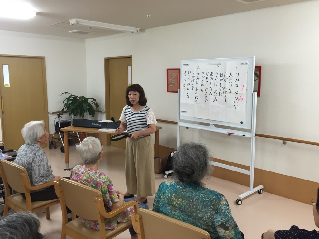 今日は1号館の音楽療法の日です。 今日は、「赤とんぼ」などの歌を、入居者様達も懐かしそうに当時を思い出しながら歌われていました。 中川先生いつも色んな歌をありがとうございます。 来週もよろしくお願いいたします。