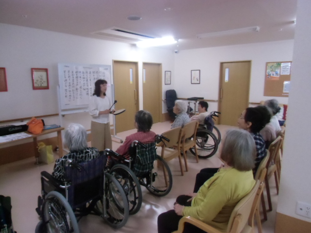 今日は1号館の音楽療法の日です。 今日は、「汽車」などの歌を、入居者様達も懐かしそうに当時を思い出しながら歌われていました。 中川先生いつも色んな歌をありがとうございます。 来週もよろしくお願いいたします。