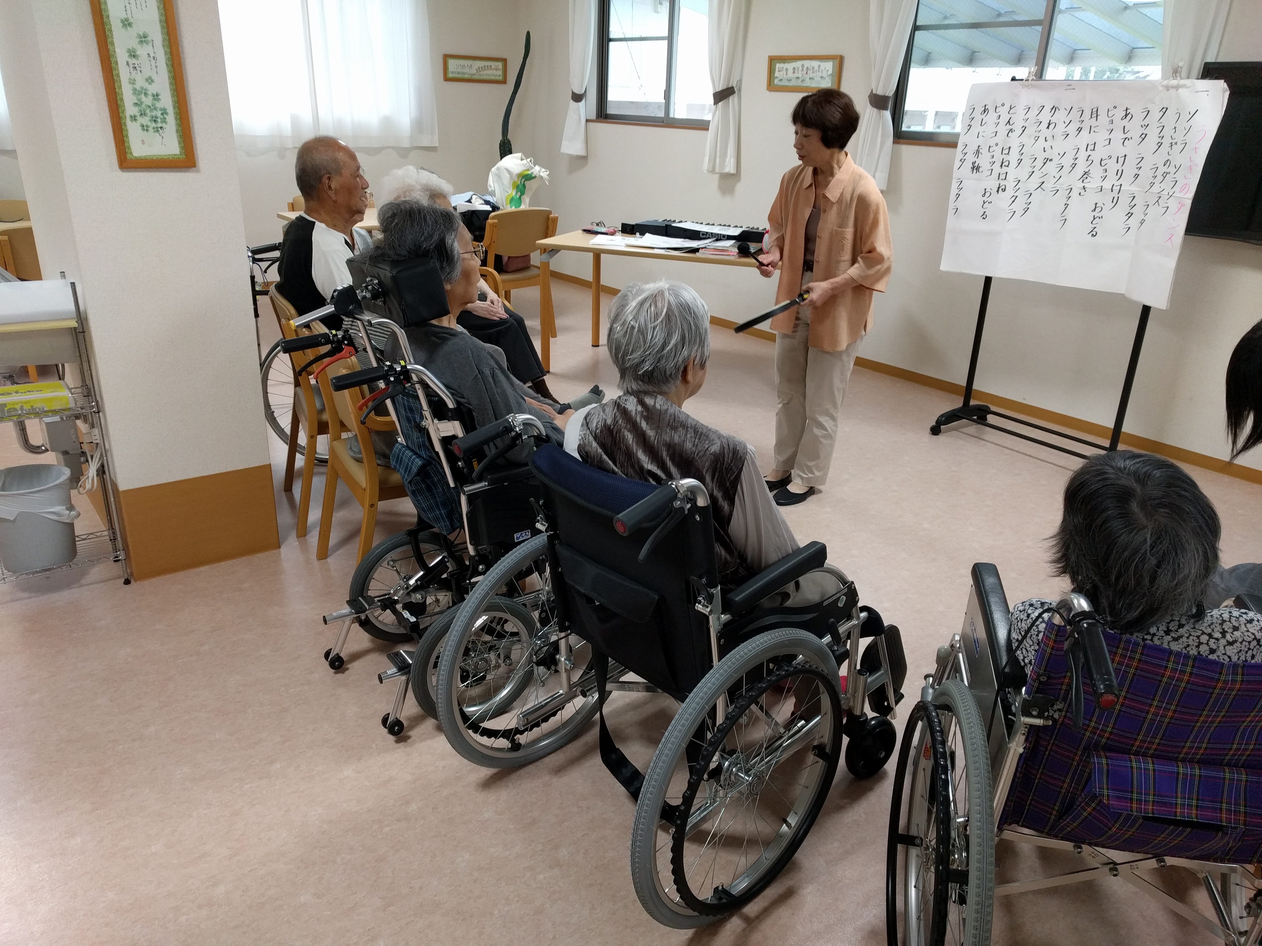 今日は2号館で音楽療法がありました。 「赤とんぼ」や「うさぎのダンス」など太鼓に合わせ 中川先生と楽しく歌われていました。 中川先生いつもありがとうございます。 来週も楽しみに待っています。 よろしくお願い致します。