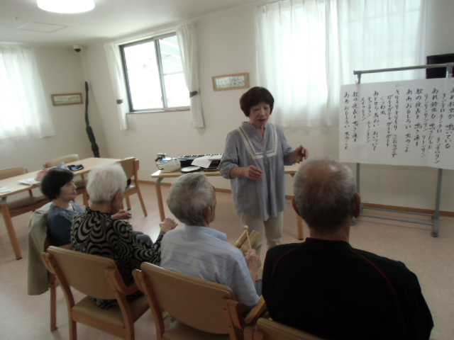 今日は2号館で音楽療法がありました。 「虫の声」や「小さい秋みつけた」など太鼓に合わせ 中川先生と楽しく歌われていました。 中川先生いつもありがとうございます。 来週も楽しみに待っています。 よろしくお願い致します。