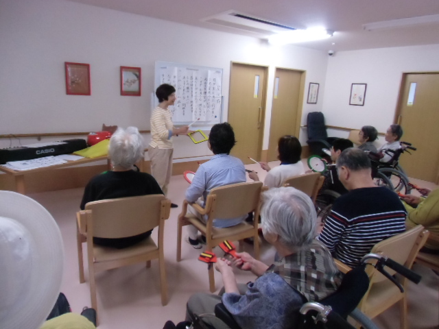 今日は1号館で音楽療法がありました。 「炭坑節」や「月がとっても青いから」など太鼓に合わせ 中川先生と楽しく歌われていました。 中川先生いつもありがとうございます。 来週も楽しみに待っています。 よろしくお願い致します。