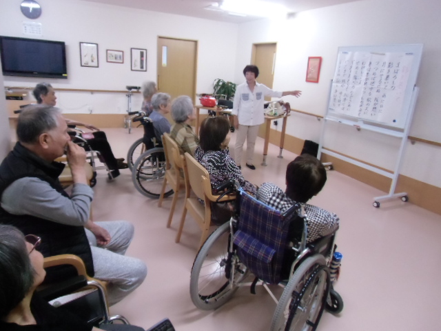 今日は1号館で音楽療法がありました。 「うさぎのダンス」や「旅の夜風」など太鼓に合わせ 中川先生と楽しく歌われていました。 中川先生いつもありがとうございます。 来週も楽しみに待っています。 よろしくお願い致します。