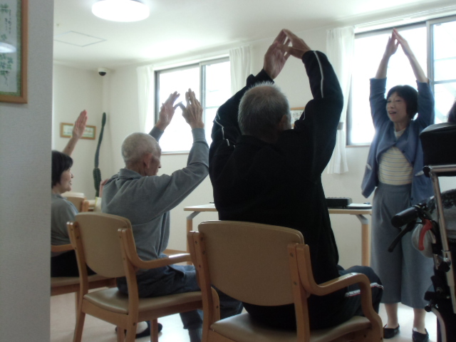 今日は2号館での音楽療法の日です。 秋らしい「里の秋」などを歌ったり、鳴子や鈴などを使って リズムをとって楽しまれていました。 中川先生来週も楽しみにしています。
