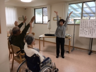 今日は2号館での音楽療法の日です。 「水戸黄門」や「ドレミの歌」を替え歌にして歌ったりして、楽しまれていました。 また、ストレッチを取り入れたりして、腕や肩などすっきりとされていました。 中川先生来週も楽しみにしています。 よろしくお願い致します。