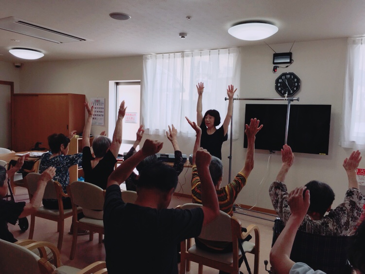今日は3号館での音楽療法の日です。 「浦島太郎」や「真赤な太陽」など、 手や体でリズムをとって楽しまれていました。 中川先生来週も宜しくお願いします。