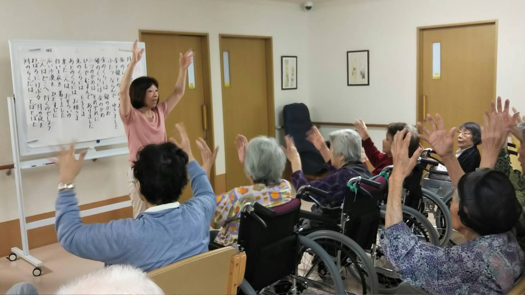 今日は1号館での音楽療法の日です。 「十五夜お月さん」や「月の沙漠」など、手や足でリズムをとりながら 楽しまれていました。 中川先生いつもありがとうございます。
