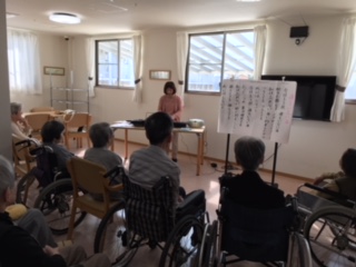 今日は2号館での音楽療法の日です。 「誰もいない海」や「汽車」など太鼓や鳴子を使って楽しまれていました。 中川先生来週も宜しくお願い致します。
