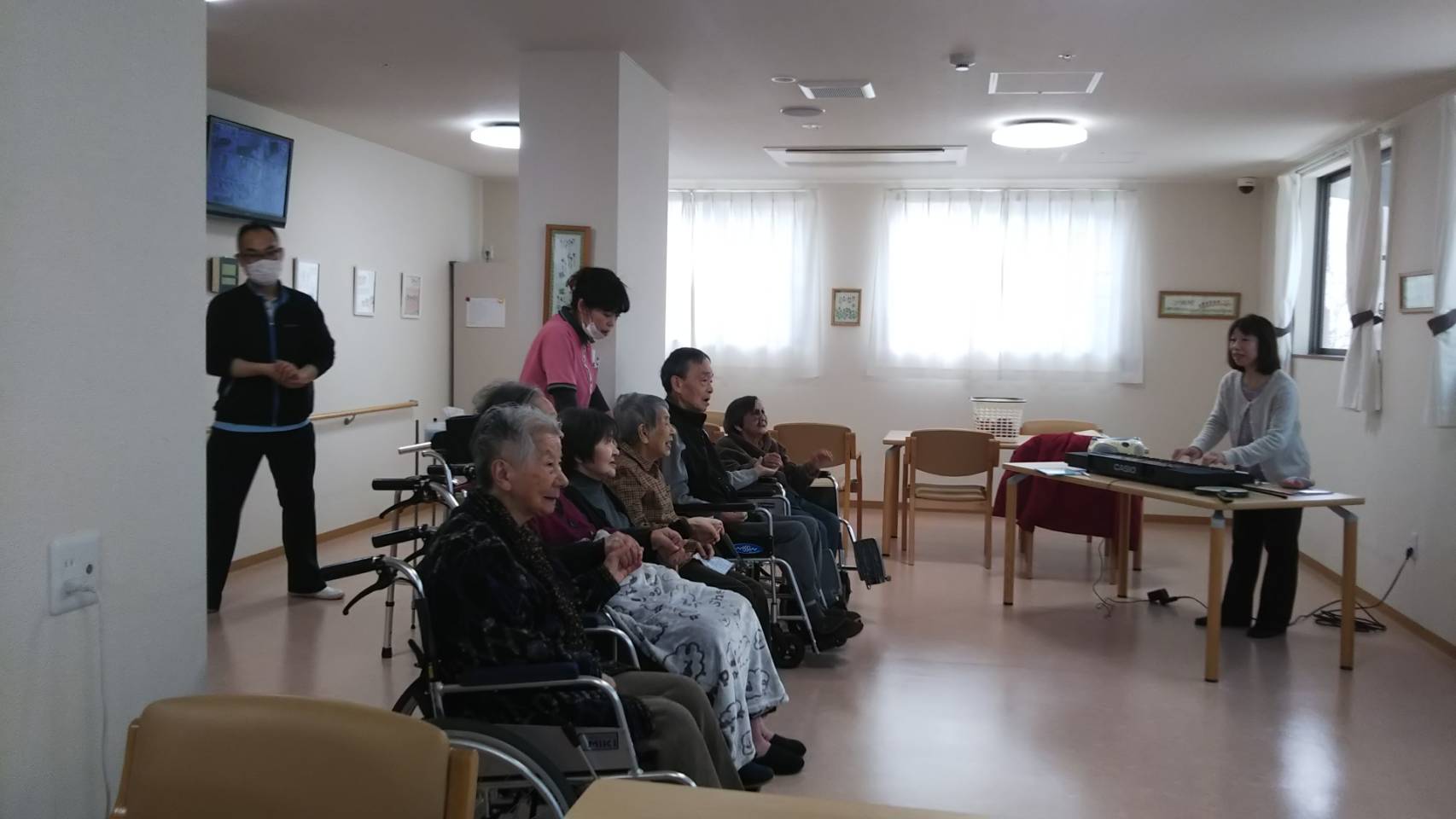 今日は2号館での音楽療法の日です。 「春よ来い」や「雪」「星影のワルツ」など 楽しく歌われていました。 中川先生来週もよろしくお願いします。