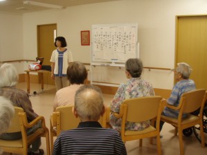 本日も入居者様が心地よくお過ごしいただけるよう、アロマテラピーを使用しました。 音楽療法と合わせて、みなさんゆったりと過ごされています。 本日の音楽療法もたくさんの方が参加され楽しく「赤とんぼ」・「人生劇場」等を 歌われていました。