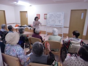 入居者様が心地よくお過ごしいただけるよう、アロマテラピーを使用しました。 音楽療法と合わせて、みなさんゆったりと過ごされています。 本日の音楽療法もたくさんの方が参加され、楽しく「チャンチキおけさ」や「野菊」等を歌われていました。