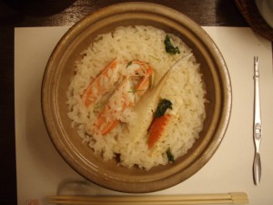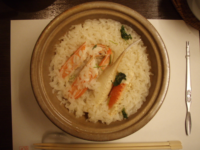 上は頂いた写真で、召し上がられたコースの中の蟹飯とのこと