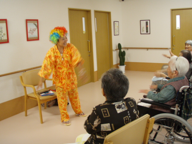 皆様、ラフターヨガってご存知ですか?? ラフターヨガとは、名前の通り笑いの呼吸法を取り入れたヨガで、 心身共に元気になれることが医学的にも実証されている、画期的なエクササイズです! セカンドライフ飾西では月に2回、ラフターヨガの講師をお招きし、入居者様に参加して 頂いております。