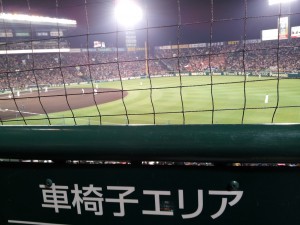 試合中の写真ですが、ファールボールに当たらないように、ネットが立ててあります!