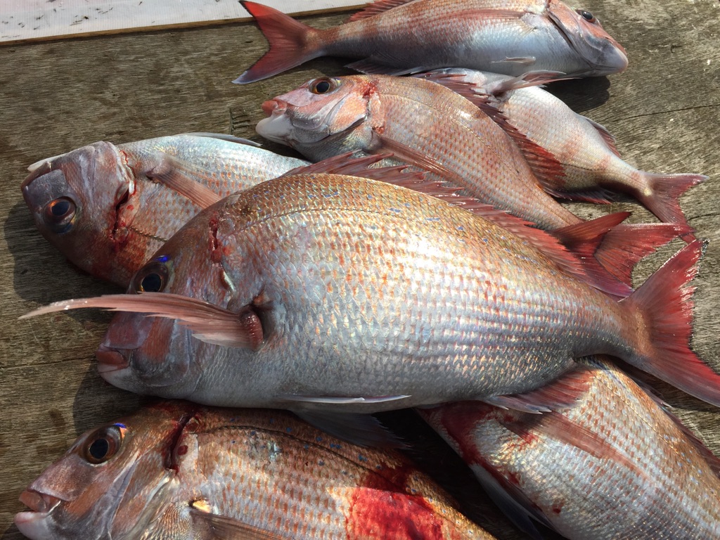 知人が小豆島沖で、沢山の鯛を釣りあげ写真を撮らさせて頂きました。 刺身、煮つけ、鯛めし等、色々と食べれますね(^^)/