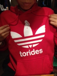 アディダスadidasなんと とりです、^_^torides よく見ると鳥のマーク 今の若者やるな^_^ 笑いと驚き^_^